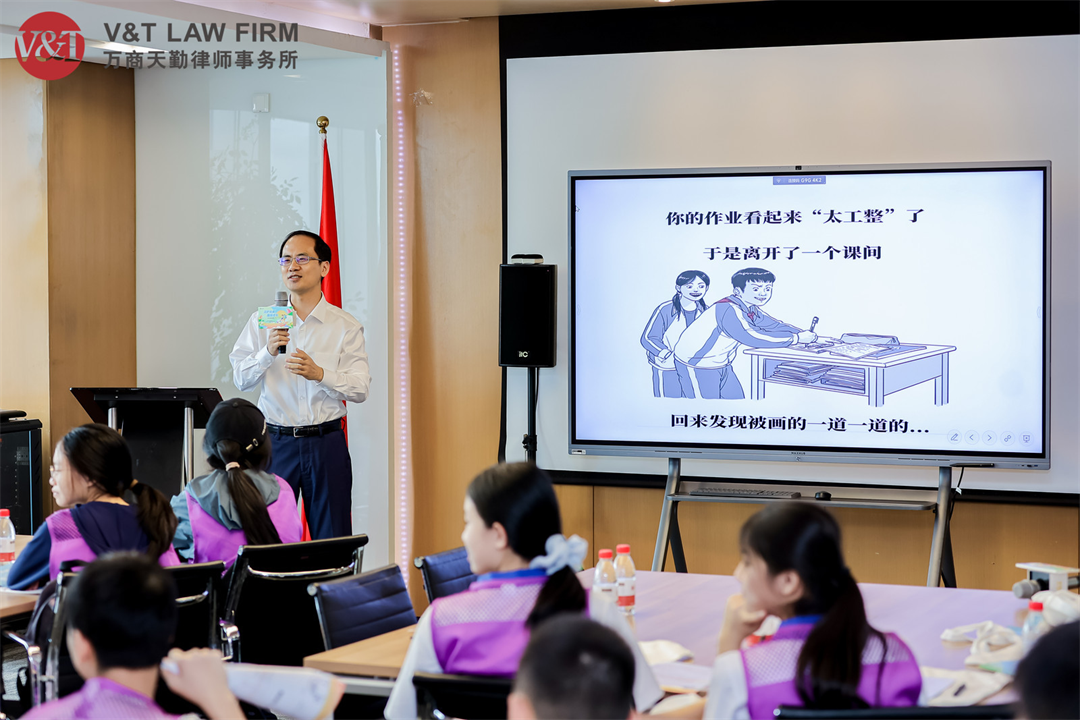 在普法课堂环节,深圳办公室执委、合伙人陈彤律师聚焦校园欺凌,以“情境漫画+实时白板”双轨教学,引导学生识别语言侮辱、社交孤立、肢体暴力等多种形态,解析其根源与危害,并梳理相关法律界定与责任边界。最后,他寄语同学们:“做一个善良的人,不欺凌他人;做一个勇敢的人,面对欺凌敢于说‘不’;做一个智慧的人,善用法律保护自己和他人。”