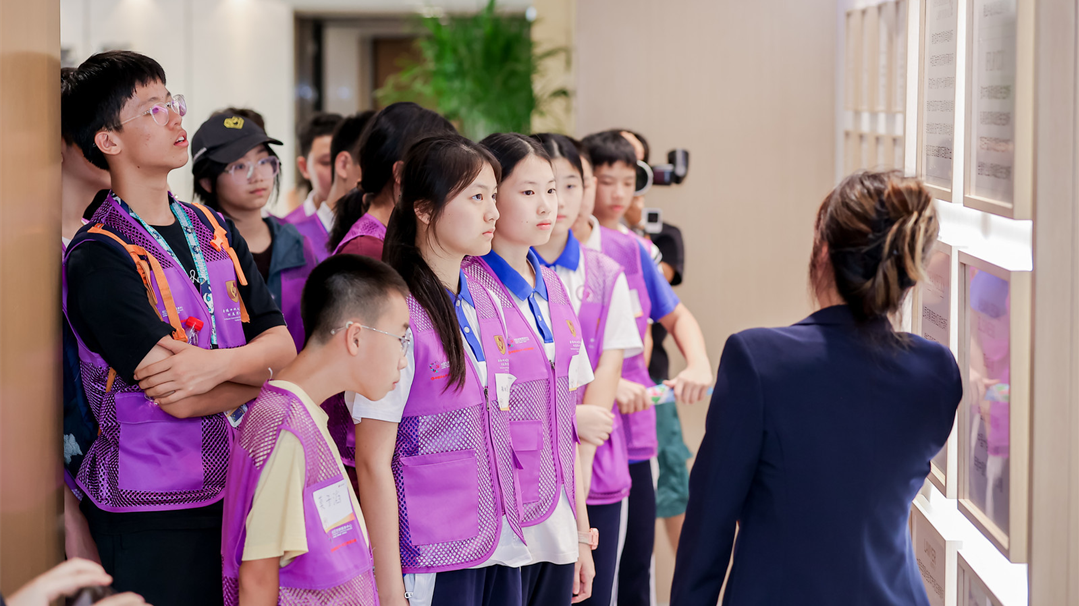 在深圳行政经理邬冰女士的带领下,孩子们踏上了“律所探秘之旅”。从事务所文化历程墙面,到温馨的休闲空间,再到忙碌的办公区域,日常的律师工作场景逐一呈现在他们眼前。法律职业不再只是书本上的名词,而成为鲜活而触手可及的未来可能。