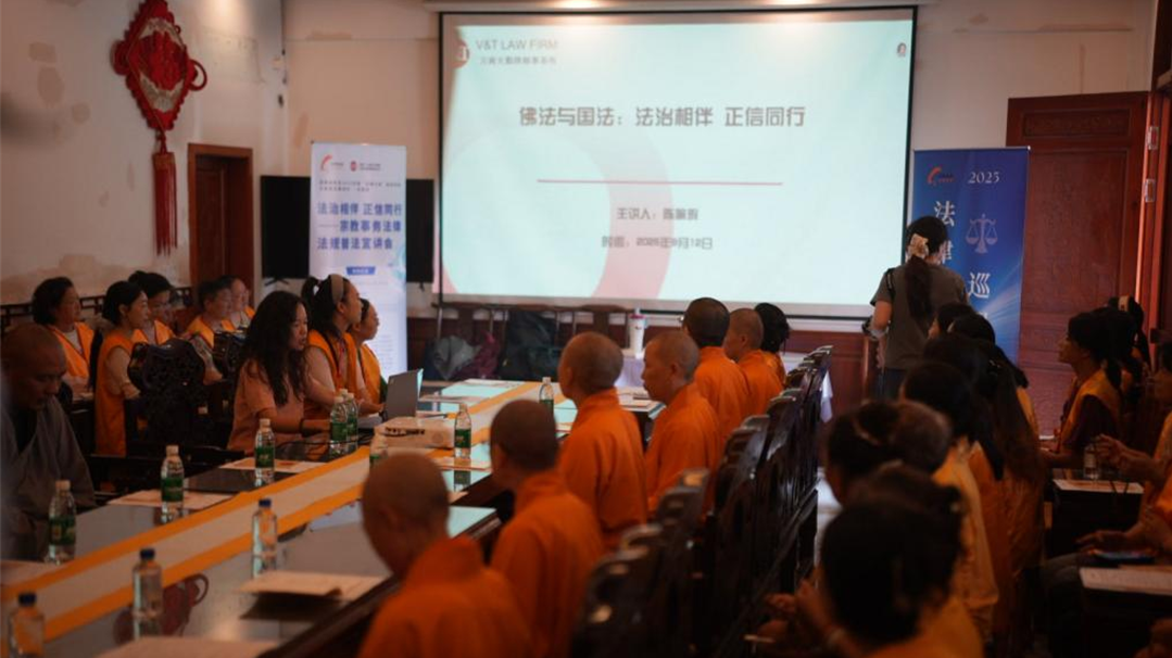讲座结束后,近慈寺住持代表寺院全体僧众及参会者,向本次普法活动的主办方、承办方和协办方致以诚挚感谢,并再次表达了在宗教活动中僧众恪守佛法、遵守国法的坚定信心。此次普法活动不仅为僧众与义工搭建了学习法律知识的桥梁,更让法治理念与宗教修行形成良性互动,收获广泛好评,是一次兼具专业与温度的交流盛会。