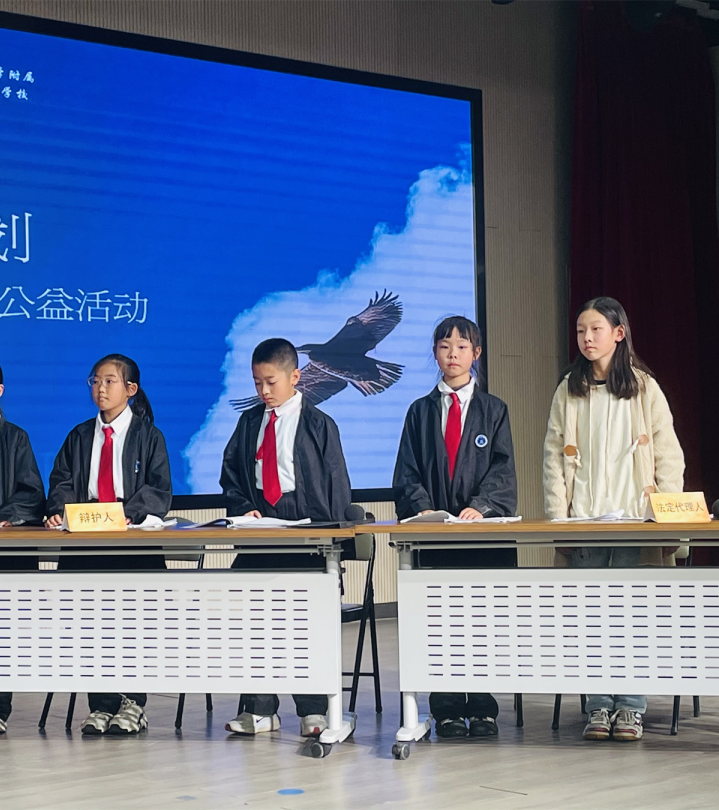 法槌敲响,模拟法庭瞬间肃穆。三位"小法官"端坐审判席,稚嫩脸庞透着超乎年龄的庄重。公诉人与辩护人围绕"网游成瘾引发盗窃"的案例展开激烈交锋,举证质证环环相扣,法庭辩论迸发思辨火花。当"被告人"哽咽陈述堕落经历时,全场静默,这个鲜活案例让抽象的法律条文化作震颤心灵的警示。通过沉浸式角色体验,同学们不仅理解了司法程序的严谨,更在心底刻下对规则最原始的敬畏——法律既是约束行为的准绳,更是守护青春的盾牌。