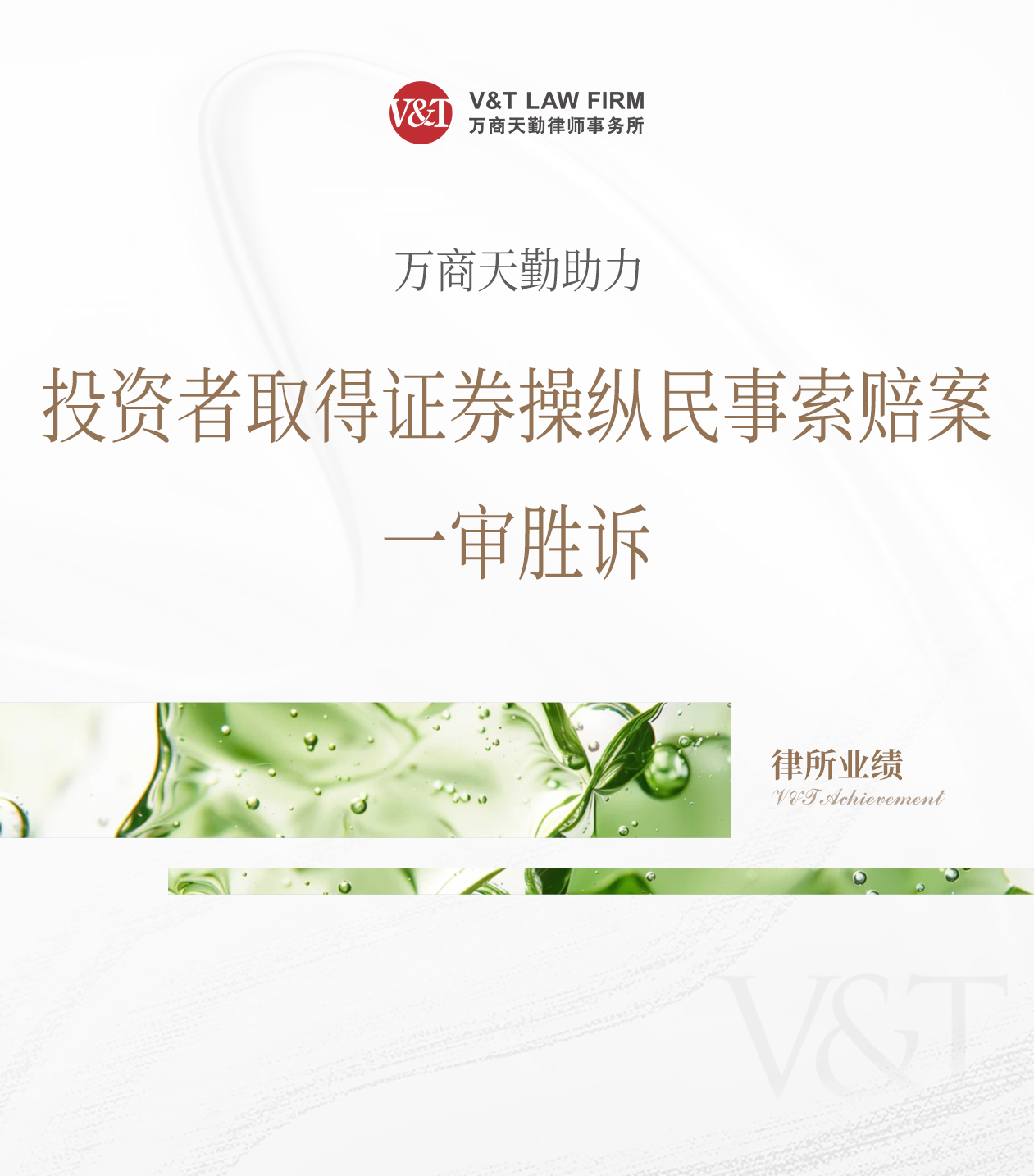 近日,万商天勤深圳办公室陈彤律师团队代理的操纵证券交易市场责任纠纷一案取得一审胜诉。法院判令操纵行为人向投资者赔偿其投资损失。该案系在中证中小投资者服务中心支持下提起的公益诉讼,是证券市场操纵民事索赔领域的又一标志性案件。