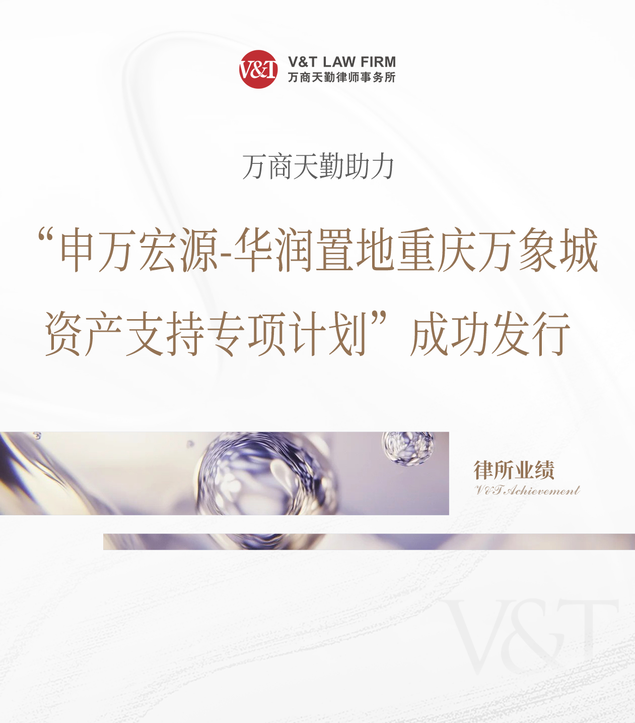 2025年8月5日,由万商天勤担任专项法律顾问的“申万宏源-华润置地重庆万象城资产支持专项计划”成功发行。本项目为华润置地重庆万象城CMBS续发项目,首发规模45.01亿,本次发行规模51亿。