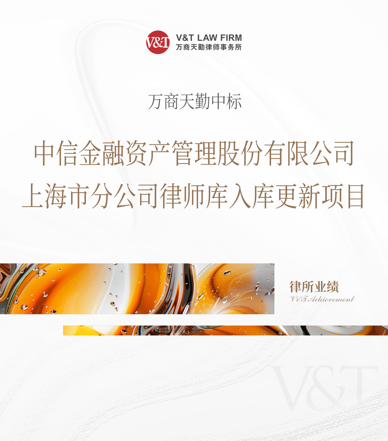 万商天勤资产管理与投资并购委员会副主任合伙人冯峰律师带领团队及仇淼律师、李志江律师、孔慧君律师、李运生律师、殷震夏律师、薛彬彬律师、陶涛律师等资产管理业务委员会秘书长及成员,凭借扎实专业的工作经验、高质量的服务能力及优良的市场口碑,在几十家投标律师服务机构中,脱颖而出成功中标“中信金融资产管理股份有限公司上海分公司律师库入库更新”项目。