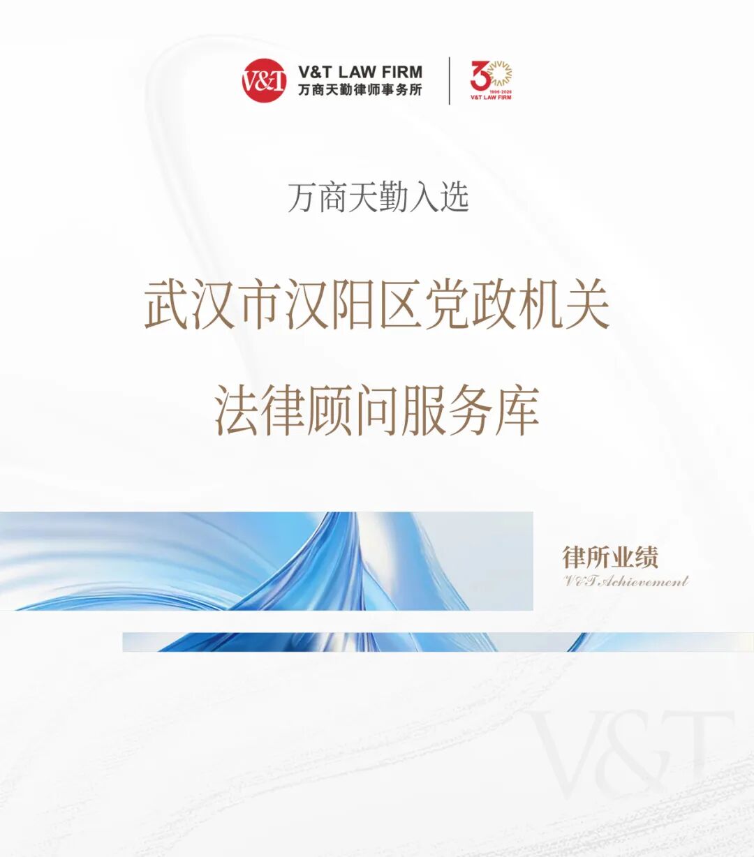 汉阳区作为武汉市重要的中心城区,在城市建设、产业发展、民生保障等领域,对法律顾问服务的专业性、规范性与实效性提出了更高要求。万商天勤武汉办公室此次成功入选,既是对万商天勤专业能力的充分肯定,也为深度服务地方治理、助力法治汉阳建设搭建了重要平台。未来,万商天勤武汉办公室将以此次入选为契机,精准对接汉阳区党政机关法律需求,持续提升专业能力,为汉阳区高质量发展筑牢坚实法治保障。