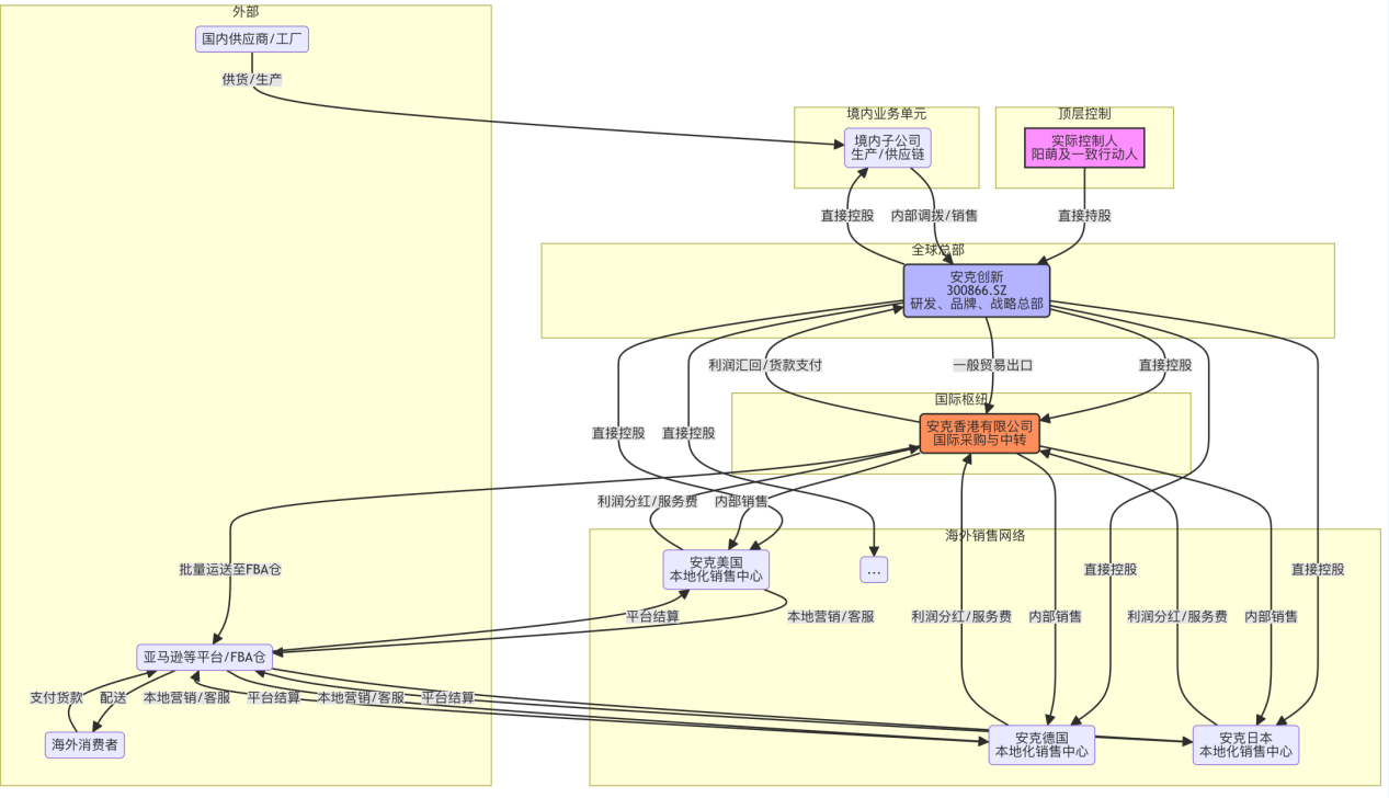 现金流向:消费者支付的货款首先进入平台或本地销售子公司的账户,在扣除平台费用、本地运营成本后,利润部分通过股息分红或关联交易支付的方式,逐步汇回至香港公司,最终归集至境内上市主体。