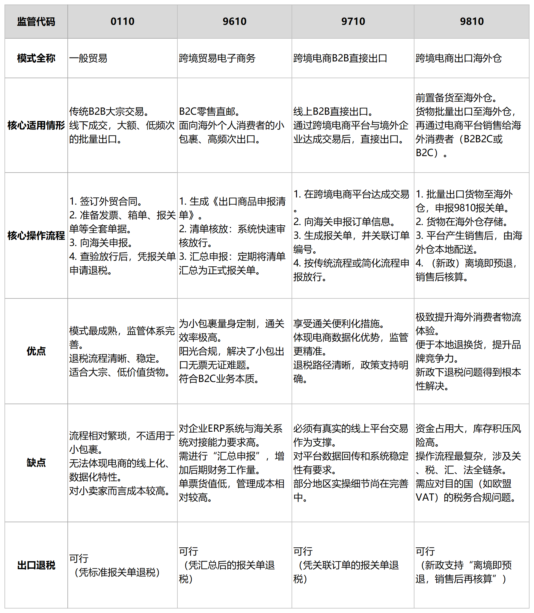 附表3:跨境电商主要出口监管代码综合比较表