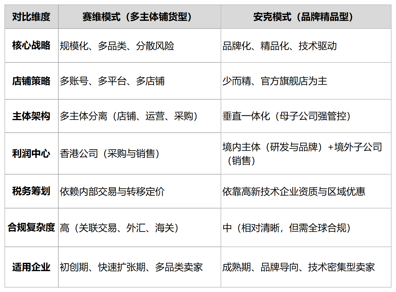(3)成熟期/全球化阶段:应学习“安克模式”的清晰与稳健。构建以境内总部为核心的全球控股架构,海外子公司作为利润中心和价值创造环节,直接向总部汇报。简化资金流与物流路径,使其更加透明、高效,便于全球合规管理。