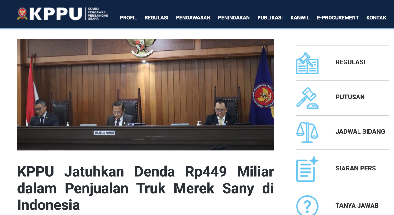 雅加达时间2025年8月6日,本所驻印尼专业律师李黎芳从官方渠道获悉并确认,印尼商业竞争监督委员会(KPPU)认定三一重工涉嫌违反竞争法关于垂直整合和市场控制的规定,对其处以4490亿印尼盾(折合人民币约1.98亿元)罚款。该罚单金额大大超过了KPPU于今年年初对谷歌进行高达2025亿印尼盾的罚款。