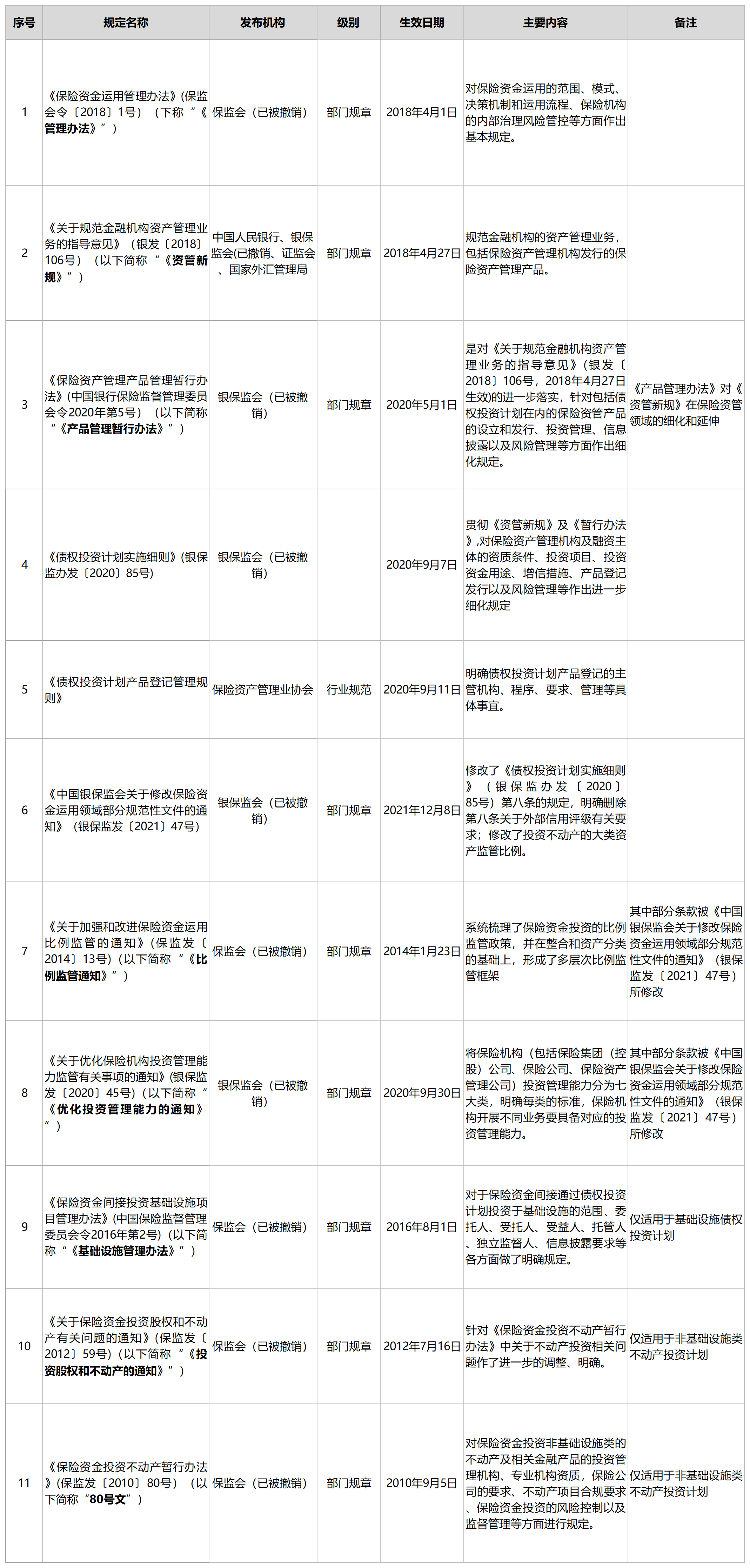 截至目前,有关于债权投资计划的且尚在有效实施的监管规定主要如下:
