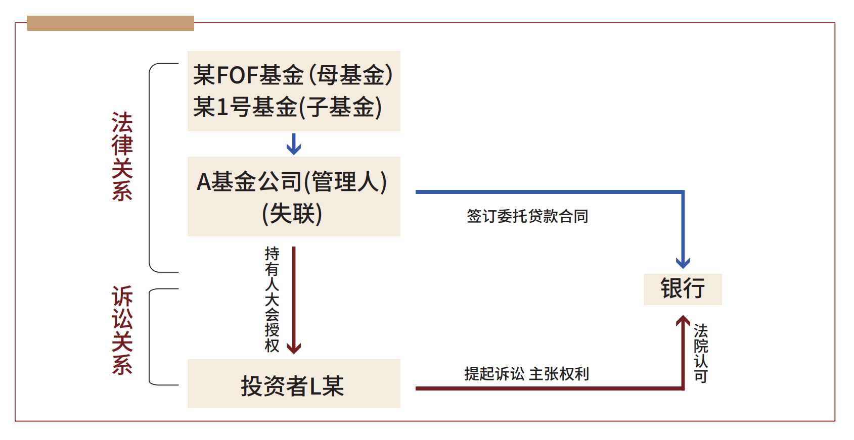 某FOF基金及某1号基金的管理人均为A基金公司。2016年,投资者L某向某FOF基金投资100万元,该基金作为母基金向其下层基金某1号基金投资2826万元。A基金公司与B银行及C公司签订委托贷款合同,约定A基金公司通过B银行向C公司发放贷款5000万元。2018年,A基金公司因失联被中国证券投资基金业协会公告并被注销私募基金管理人资格。在此情况下,FOF基金份额持有人及某1号基金份额持有人通过召开基金份额持有人大会,决议终止基金运作、成立清算组,并授权L某等代表基金处理后续清算及对外维权事宜。依基金份额持有人大会授权,L某代表基金要求B银行提供委托贷款相关信息资料。B银行拒绝L某的主张。L某遂向一审法院提起诉讼,请求判令B银行向其提供委托贷款相关信息资料。一审法院经审理,判决支持了L某的诉讼请求。B银行不服一审判决,上诉至北京金融法院。
