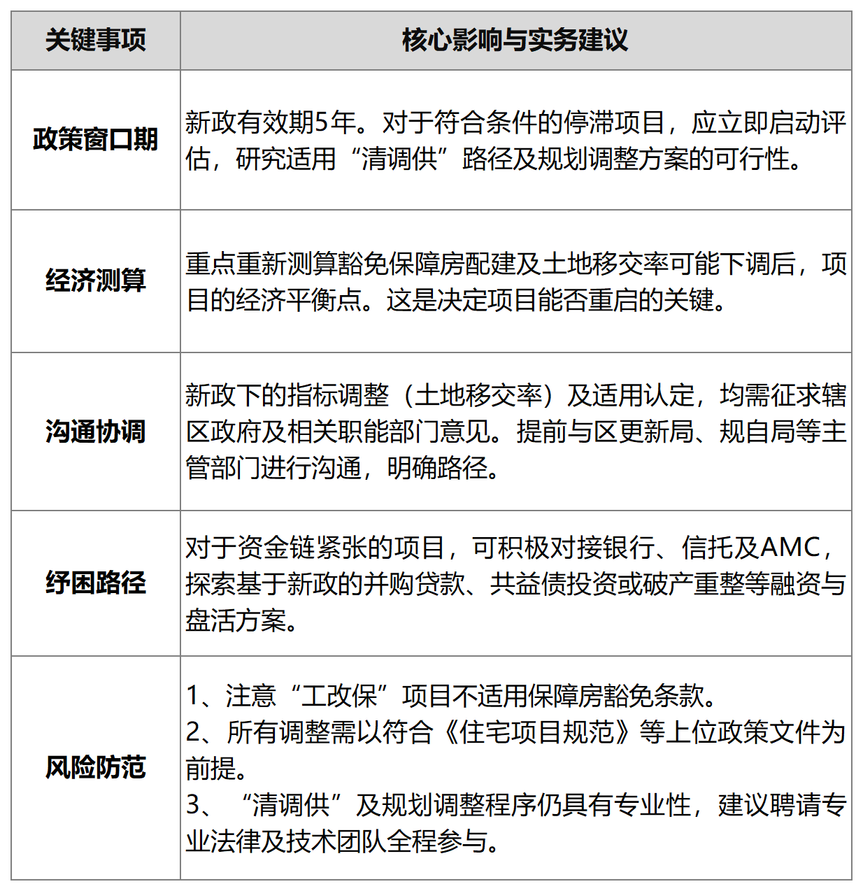 本次新政重点通过实质性的“减负”和灵活的“调规”,为市场注入了信心,有望撬动数百个停滞项目重启,对稳定房地产投资、优化城市空间结构具有重要意义。对于市场主体、村股份公司、被拆迁人等相关利益主体而言,深入理解政策、把握窗口期、积极务实推进,将成为分享本轮政策红利的关键。