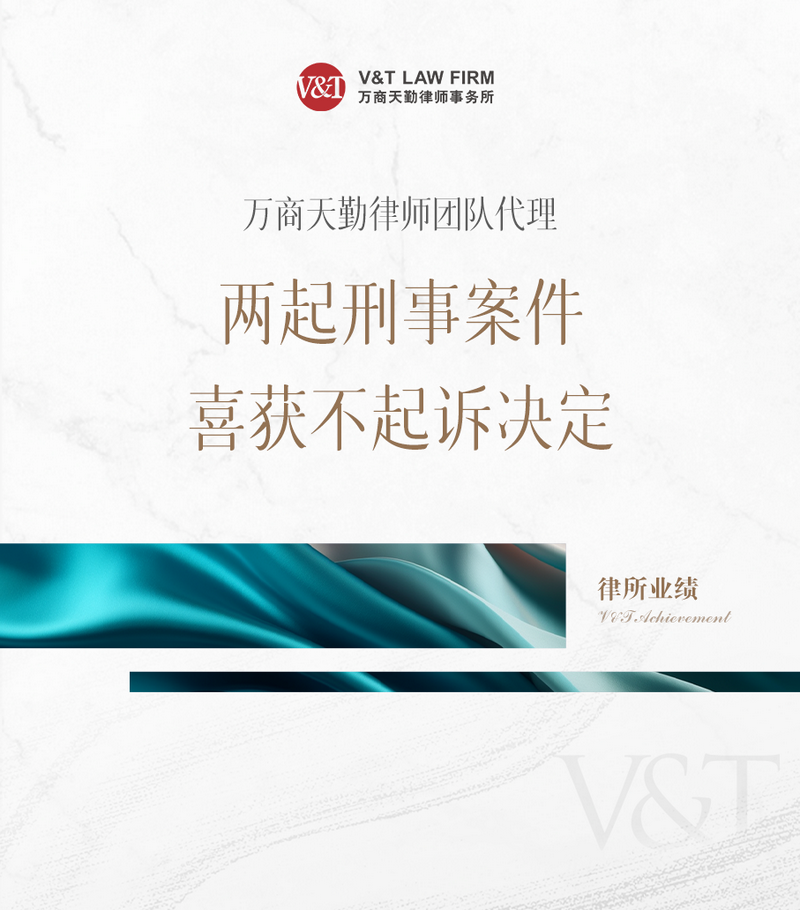V&T 业绩|万商天勤律师团队代理两起刑事案件喜获不起诉决定