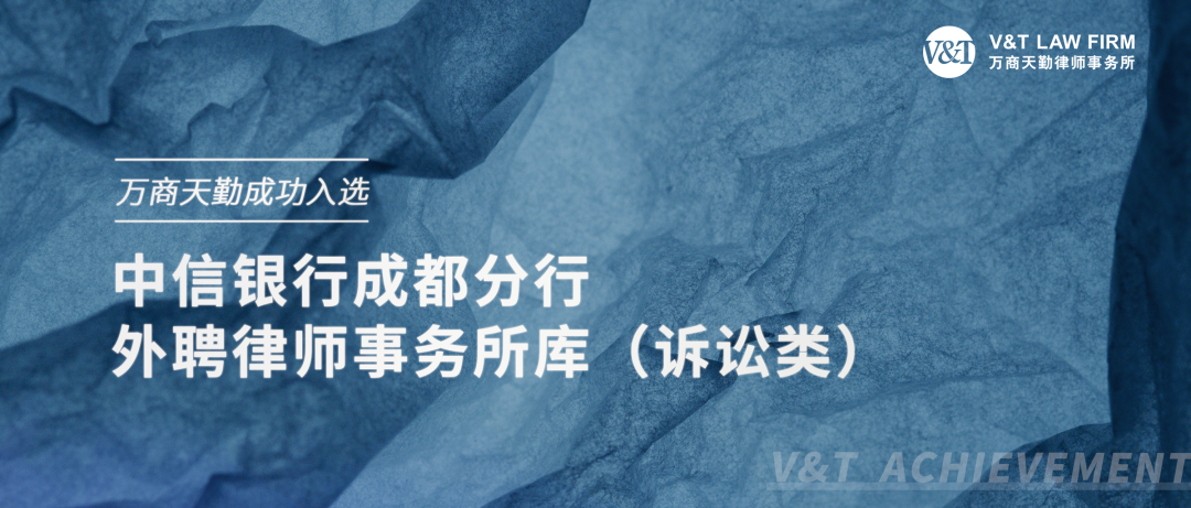 V&T 业绩|万商天勤入选中信银行成都分行外聘律师事务所库(诉讼类)